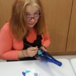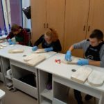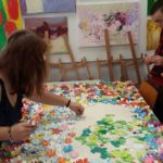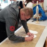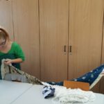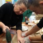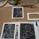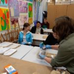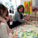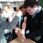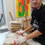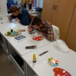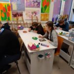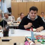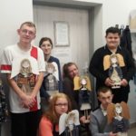 Oczywiście zdobywanie wiedzy stanowiło jedynie pierwszy etap działań realizowanych w ramach projektu. Nasi uczniowie – jak zwykle chętni do tworzenia – nie tylko poznali ornamentykę, surowce i techniki wykonywania wyrobów rękodzielniczych, ale także sami spróbowali swoich sił, przygotowując prace plastyczne inspirowane folklorem ziemi tarnowskiej. W czasie warsztatów uczniowie tworzyli anioły z drewna malowane w charakterystyczne dla sztuki ludowej kolory, połączone z elementami haftu i tkaniny oraz obrazy na szkle, przedstawiające Madonny z okolicznych sanktuariów i barwne kompozycje kwiatowe.