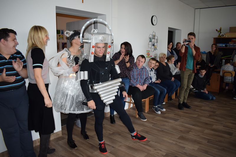 Zachowując tradycję podopieczni nasi podopieczni spotkali się na Andrzejkach. Ale że szkoła nowoczesna i wyposażona w nowoczesne technologie to i scenariusz zabawy odbiegający od schematu. Na spotkaniu pojawili się podróżni z roku 2118, którzy dzięki maszynie czasu przybyli do naszego Ośrodka. Niepotrzebny był wosk, karty czy szklana kula. Robot Samsuś pokazał zebranym w sali dzieciom co czeka ich w przyszłości. Nowoczesne domy, samochody, zawód który będą wykonywać, a nawet jak będą wyglądać za kilkadziesiąt lat. Nie wszyscy rozpoznali siebie na prezentowanych obrazach. Muzyka, która okazała się być ponadczasowa połączyła podróżników i uczniów we wspólnym tańcu i zabawie.