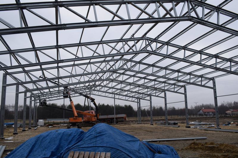 Nabierają tempa prace przy wznoszeniu konstrukcji stajni i krytej ujeżdżalni. Główna część konstrukcji już została zamontowana i robi ogromne wrażenie. Prace przebiegają bardzo sprawnie. Niedługo spodziewamy się ich zakończenia. Na finiszu są także prace prowadzone przy elewacji budynku, który będzie zapleczem kompleksu do hipoterapii. Nikt z nas nie wyobrażał sobie na etapie planowania obiektu jak wspaniale będzie się prezentował.