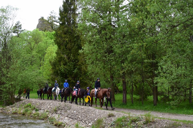 Grupa średnio-zaawansowana odbyła bardzo bezpieczną przejażdżkę stępem i kłusem w wąwozie Białej Wody. Przepiękne widoki potoku i skał oraz poczucie satysfakcji z samodzielnej jazdy na długo zostaną w pamięci jeźdźców.
