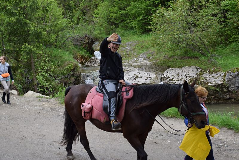 Zawodnicy Olimpiad Specjalnych zazwyczaj ćwiczą na ogrodzonej albo krytej ujeżdżalni w znanych i przewidywalnych warunkach. Tym razem mogli sprawdzić swoje umiejętności w terenie! Spisali się na medal! Nie straszne były im strome zjazdy i podjazdy, górskie ścieżki i rozległe połoniny. Szybko dogadali się z nowymi końmi, które okazały się bardzo grzeczne i przyjazne. Jazda na nieznanych koniach i w nowym terenie – to naprawdę wielki wyczyn! Takie wyjazdy są też bardzo ważne szkoleniowo. Jeźdźcy uczą się w praktyce adekwatnych reakcji na zachowania konia tak, aby współpraca ze zwierzęciem była bezpieczna i satysfakcjonująca.