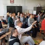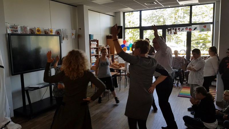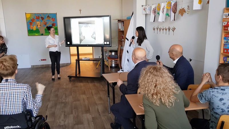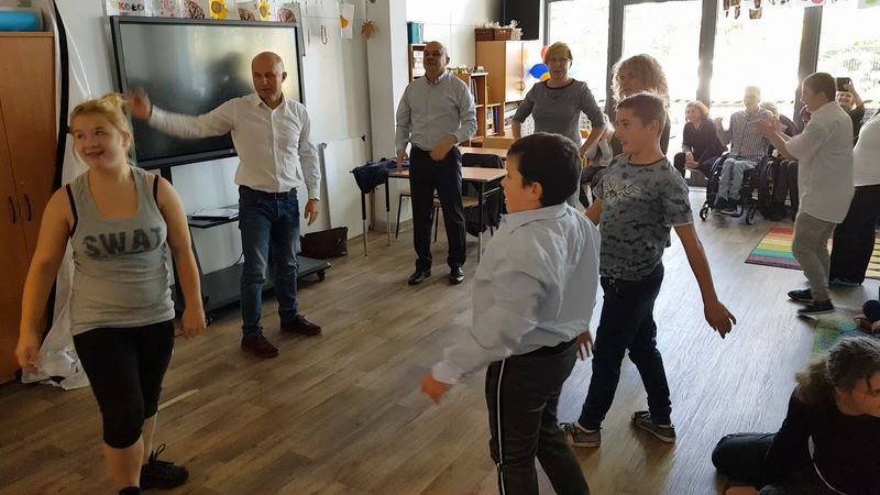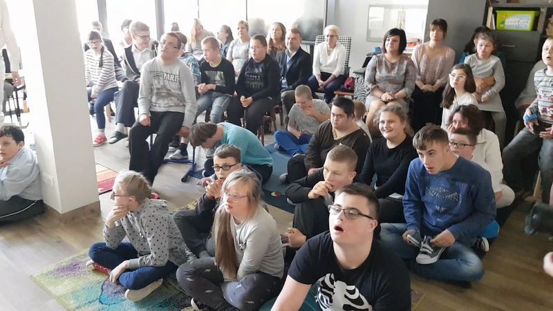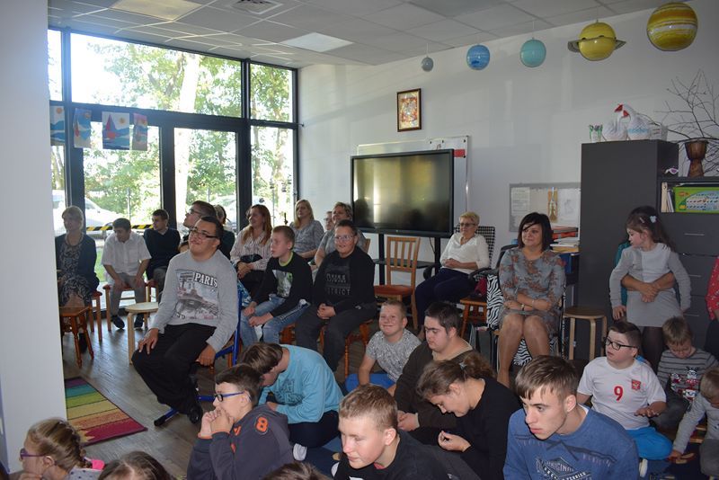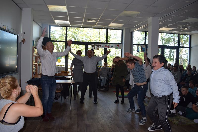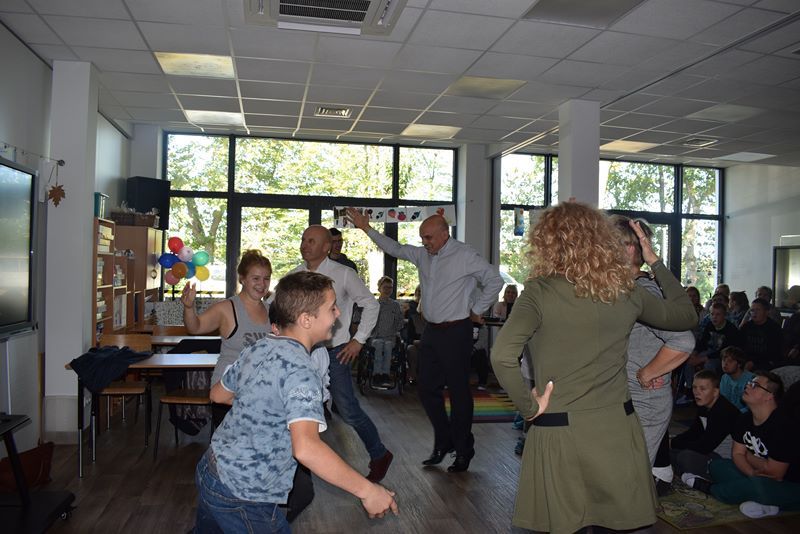 Dzień Edukacji Narodowej w naszej szkole to ważne święto w ośrodkowym kalendarzu, a także okazja do podziękowania nie tylko pracownikom, ale przede wszystkim naszym uczniom za to, że wspólnie tworzymy naszą rzeczywistość. Tegoroczna impreza dostarczyła wszystkim świetnej zabawy i wiele uśmiechu – oto bowiem w szkolnych ławach zasiadła dyrekcja i nauczyciele, którzy zostali poddani bardzo trudnym zadaniom, w których sprawdziliśmy ich percepcję słuchową, percepcję wzrokową, kojarzenie przyczynowo- skutkowe, małą oraz dużą motorykę, koordynację wzrokowo- ruchową i wiele innych… . Odgadnięcie ucznia po jego sylwetce w teatrze cieni, nauczyciela po zdjęciu z dzieciństwa czy głosie nagranym dyktafonem, zajęcia ruchowe z elementami terapii metodą Rudolfa Labana a na koniec test wiedzy ogólnej, dostarczyły wszystkim zebranym mnóstwo śmiechu i zabawy a egzaminowanym przypomniały , że bycie uczniem to poważna sprawa .