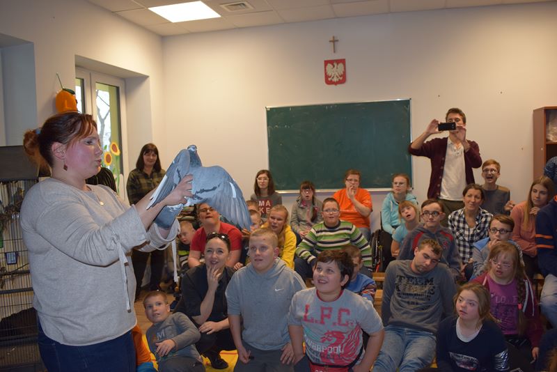 Uczniowie zainspirowani ciekawą prelekcją p. Michała z Zespołu Parków Krajobrazowych Województwa Małopolskiego aktywnie uczestniczyli w atrakcyjnych warsztatach plastycznych . Zwieńczeniem spotkania była część artystyczna w wykonaniu nauczycieli, którzy wcielili się w rolę bajkowych ptaków. Podczas spotkania uczniowie mieli wspaniałą okazję sprawdzić i uzupełnić swoje wiadomości o zwierzętach. Dziękujemy organizatorom za dostarczenie wszystkim tak wielu niezapomnianych przeżyć. Już wkrótce na naszej stronie będzie dostępna pełna relacja filmowa z z tego niezwykłego dnia.