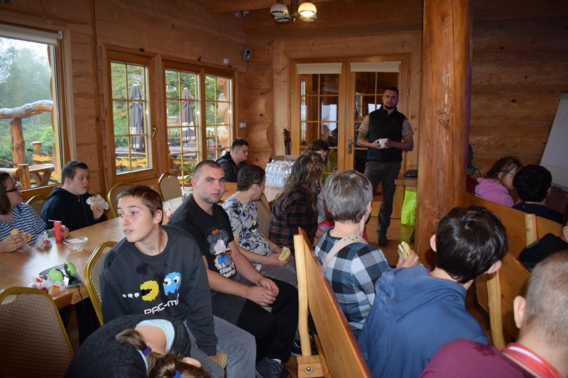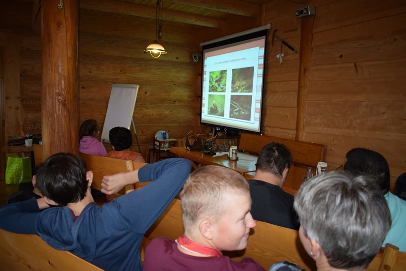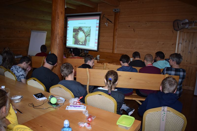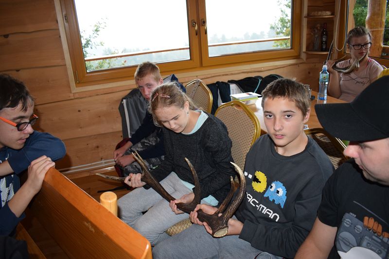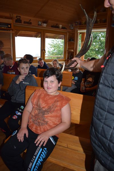 Piękne krajobrazy, zwierzęta, rośliny zawsze przyciągają miłośników przyrody. Nasi uczniowie także do nich należą. Rzęsiście padający w środę deszcz nie przeszkodził w wycieczce na Jamną. W niezwykle malowniczo położonej Chatce Włóczykija uczniowie spotkali się z panem Łukaszem Drobotem, który przepięknie wprowadził ich w świat zwierząt, ilustrując go wykonanymi przez siebie niezwykłymi fotografiami. Wychowankowie mieli też okazję sprawdzić swoją wiedzę uczestnicząc w konkursie z nagrodami. Z pomocą pana Łukasza zbudowali także budkę dla ptaków Pozostał pewien niedosyt ,ponieważ pogoda uniemożliwiła zajęcia w terenie. Mamy nadzieję, że jeszcze tam wrócimy. Po powrocie do domu zaskoczyła nas informacja, że pan Łukasz jest policjantem, a fotografowanie przyrody to jego pasja.