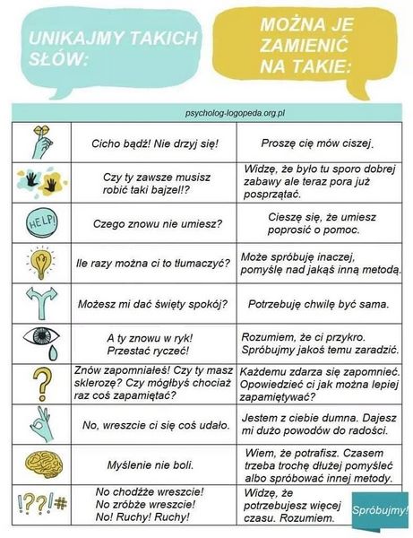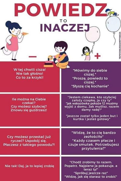W ramach tygodniowego pakietu zdalnego wsparcia psychologicznego kontynuujemy wątek „uprawomocnienia”. Jak mówić, żeby „uważniać” emocje? Jak mówić, żeby nie eskalować konfliktów? Jak mówić, żeby dzieci (i nie tylko) nas słuchały? Jak w rozmowie dbać o uczucia własne i innych? Wiele inspiracji można znaleźć na poniższych grafikach. Zapraszamy do komunikacyjnego eksperymentowania.