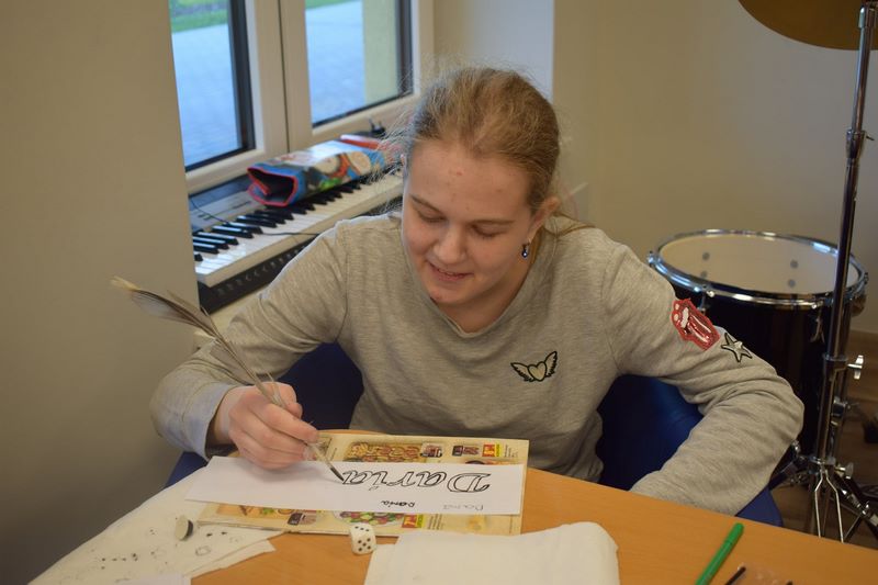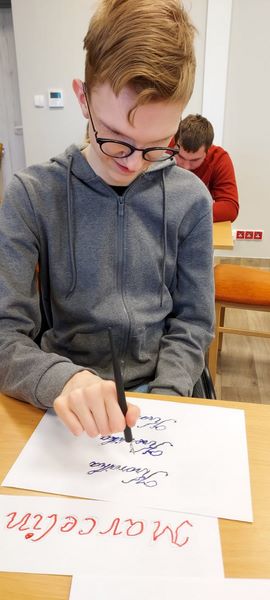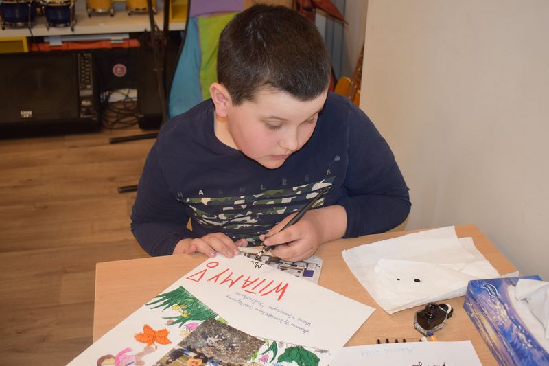 Z okazji Światowego Dnia Książki w naszym Ośrodku odbyły się ciekawe warsztaty. Tym razem wychowankowie dowiedzieli się, jak powstają kroniki historyczne, szkolne i rodzinne. Przez cały tydzień wspólnie z wychowawcami opisywali ważniejsze wydarzenia z życia klasy oraz gromadzili fotografie. Z zaangażowaniem ćwiczyli się w sztuce kaligrafii, korzystając z zapomnianych już narzędzi pisarskich jak ptasie lotki i pióra ze stalówką. Chociaż czasem w tekście pojawiały się atramentowe kleksy, nie zniechęcali się do tego wymagającego zajęcia. Powstały w ten sposób pierwsze karty kroniki, które zostaną wyeksponowane w szkolnym korytarzu.