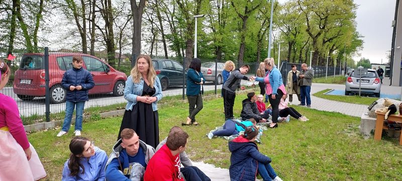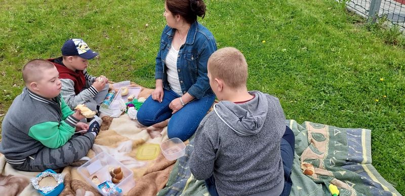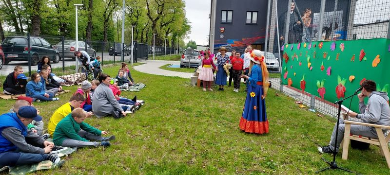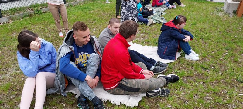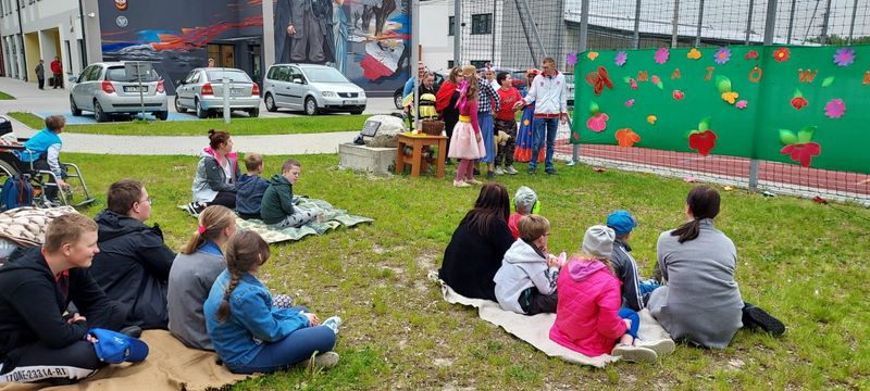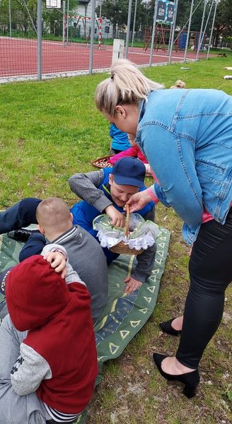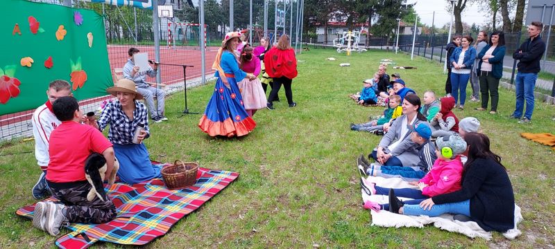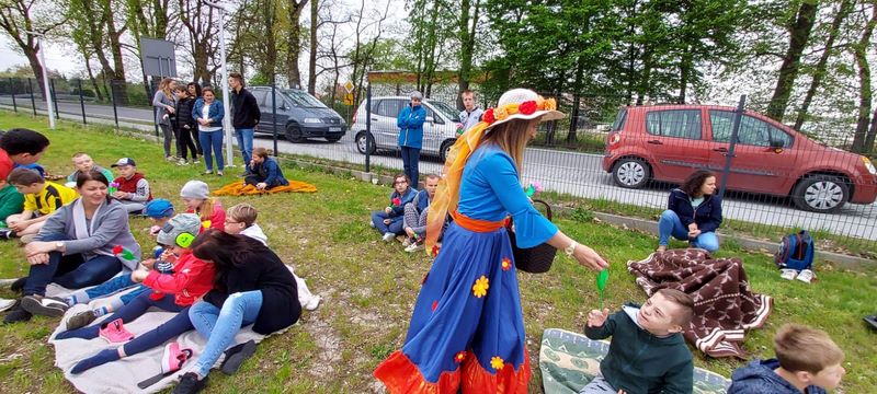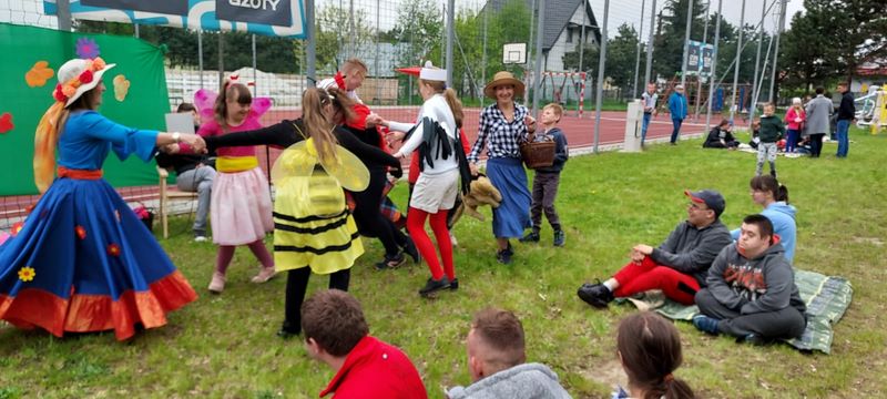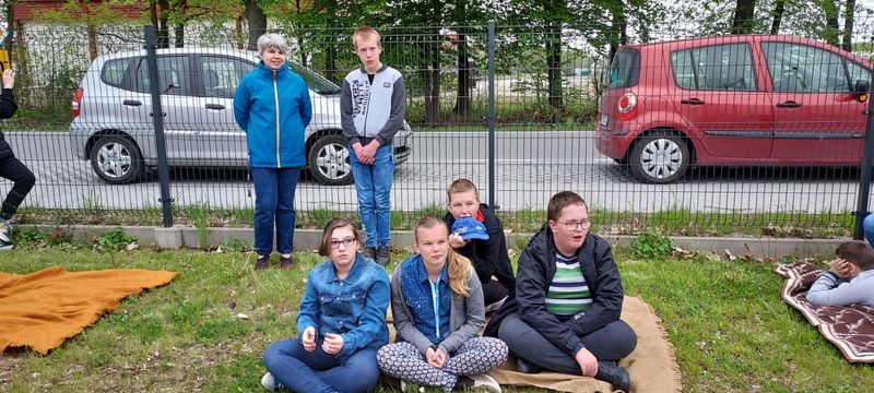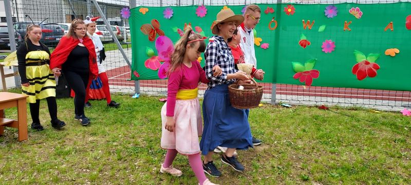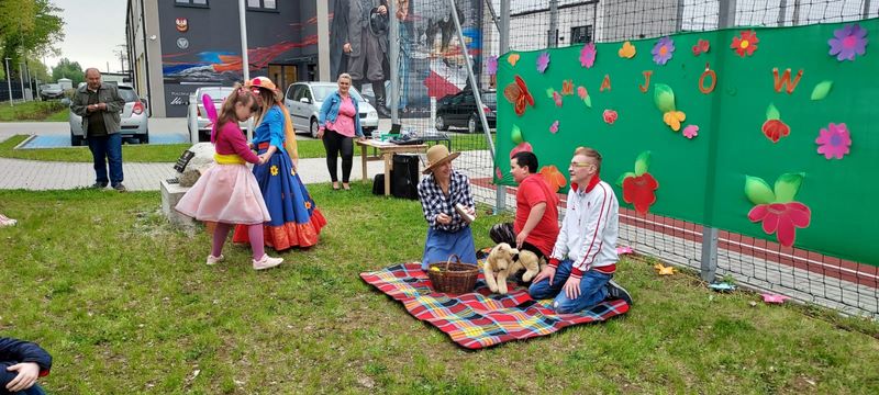 W piękny majowy dzień, przy sprzyjającej pogodzie uczniowie naszego Ośrodka uczestniczyli w Majówce – pikniku zorganizowanym przez wychowanków Internatu. Piknik rozpoczął się inscenizacją piosenki pt. „Na majówkę”, która pokazała, jak każda rodzina może wspólnie spędzić czas w otoczeniu przyrody. Piosenkę zaśpiewał samodzielnie Grzegorz, zachwycając wszystkich swoim głosem. Po piosence dzieci zmierzyły się z zagadkami słownymi, dźwiękowymi oraz wizualnymi, za odgadnięcie których była słodka nagroda. Dzieci miały też okazje wcielać się w różne zwierzątka, owady a nawet zjawiska atmosferyczne naśladując ich odgłosy. Następnie Panie Wiosna oraz jej towarzysze – motyl, pszczółka, biedronka i bocian zaśpiewali piosenkę „Wiosna w błękitnej sukience”. Miłym podarunkiem od Pani Wiosny był kwiatek dla każdego dziecka. Na zakończenie pikniku wszyscy z wielkim apetytem zajadali pyszne bułeczki.