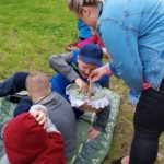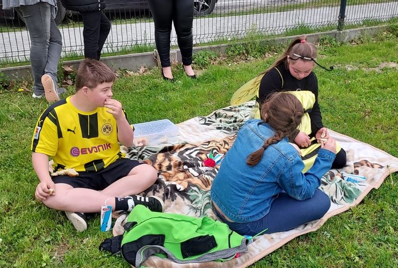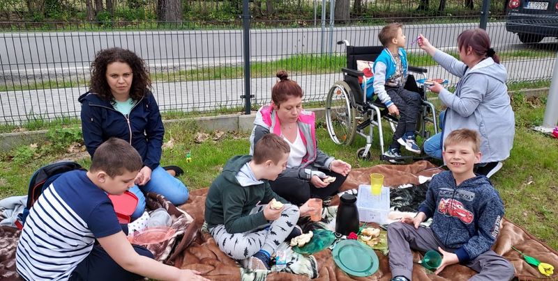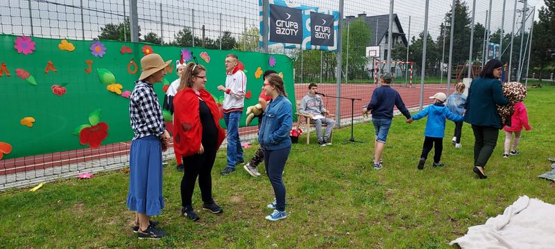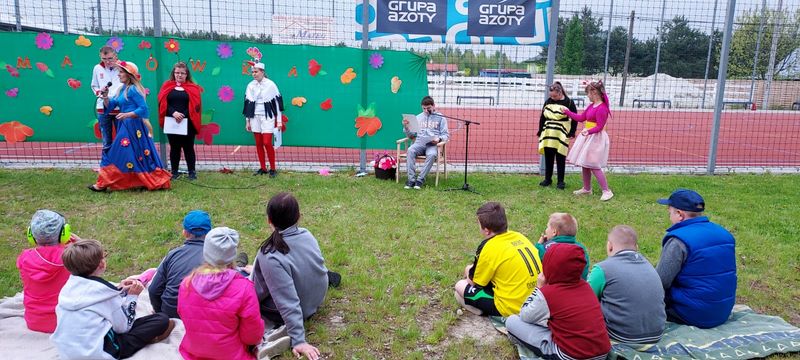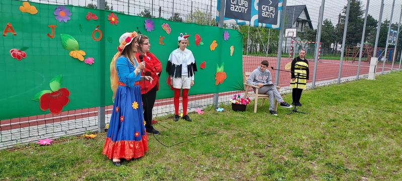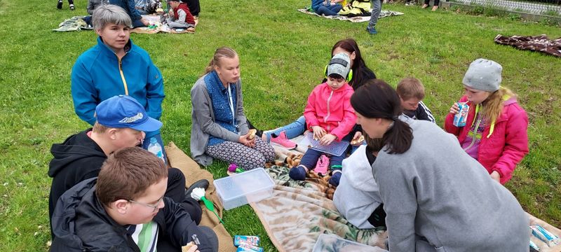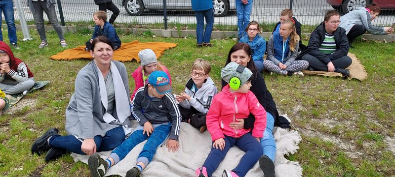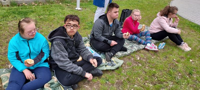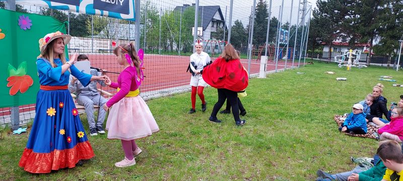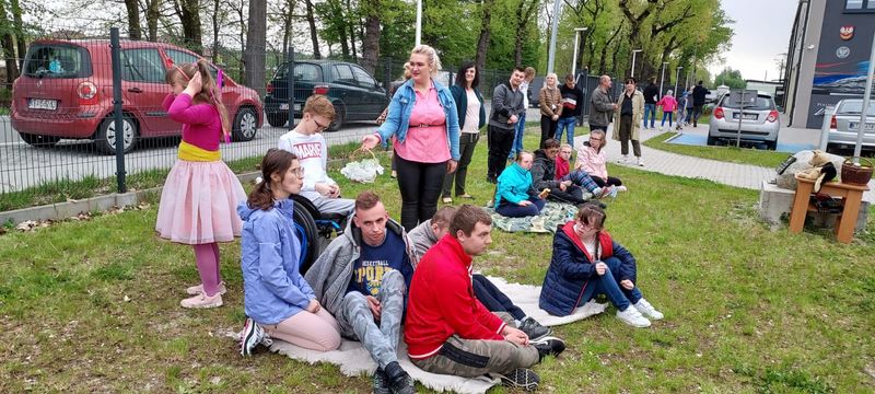 W piękny majowy dzień, przy sprzyjającej pogodzie uczniowie naszego Ośrodka uczestniczyli w Majówce – pikniku zorganizowanym przez wychowanków Internatu. Piknik rozpoczął się inscenizacją piosenki pt. „Na majówkę”, która pokazała, jak każda rodzina może wspólnie spędzić czas w otoczeniu przyrody. Piosenkę zaśpiewał samodzielnie Grzegorz, zachwycając wszystkich swoim głosem. Po piosence dzieci zmierzyły się z zagadkami słownymi, dźwiękowymi oraz wizualnymi, za odgadnięcie których była słodka nagroda. Dzieci miały też okazje wcielać się w różne zwierzątka, owady a nawet zjawiska atmosferyczne naśladując ich odgłosy. Następnie Panie Wiosna oraz jej towarzysze – motyl, pszczółka, biedronka i bocian zaśpiewali piosenkę „Wiosna w błękitnej sukience”. Miłym podarunkiem od Pani Wiosny był kwiatek dla każdego dziecka. Na zakończenie pikniku wszyscy z wielkim apetytem zajadali pyszne bułeczki.