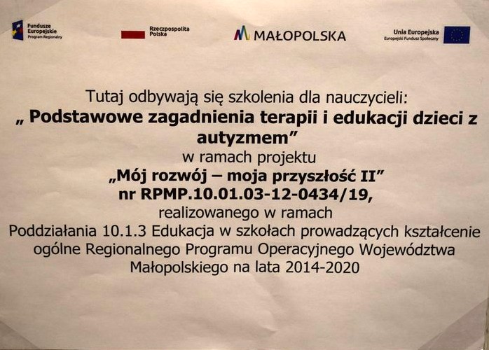 W ramach realizowanego projektu „Mój rozwój- moja przyszłość” 32 pedagogów naszego Ośrodka uczestniczyło w specjalistycznym szkoleniu, którego tematem była praca z dzieckiem autystycznym. Dziękujemy pani Magdalenie Foryś za merytoryczne, profesjonalne przekazanie wiedzy z tego obszaru pracy edukacyjno-terapeutycznej. Rozwijamy się dla Was.