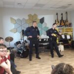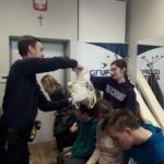 W ramach realizacji szkolnego programu profilaktycznego nasi uczniowie mogli dziś uczestniczyć w spotkaniu z policjantami pracującymi w Komendzie Miejskiej Policji w Tarnowie. Panowie w ciekawej formie przekazali wiele cennych uwag związanych z bezpieczeństwem na co dzień. Opowiadali o swojej pracy, prezentowali wyposażenie policyjne oraz obdarowali nas wszystkich elementami odblaskowymi.