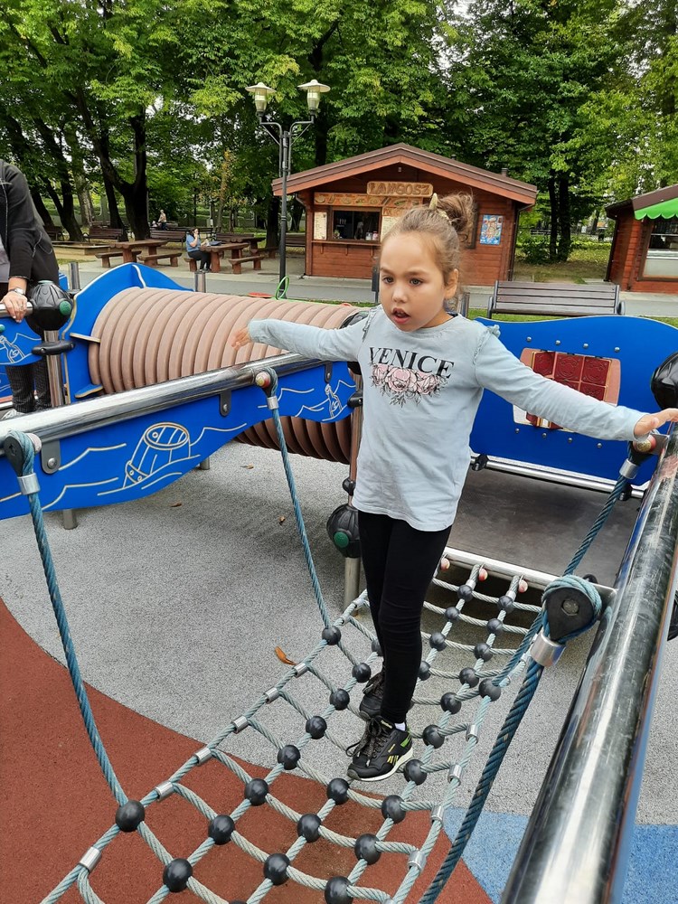W środę najmłodsi uczniowie Ośrodka wybrali się do Tarnowa, by pospacerować w Parku Strzeleckim i skorzystać ze znajdujących się tam atrakcji. W ogrodzie sensorycznym zachwycali się zapachem lawendy, obserwowali pływające po stawię kaczki i łabędzie, zadzierali głowy, by obejrzeć mauzoleum generała Józefa Bema. Najwięcej radości młodym odkrywcom dał plac zabaw i pyszne gofry.