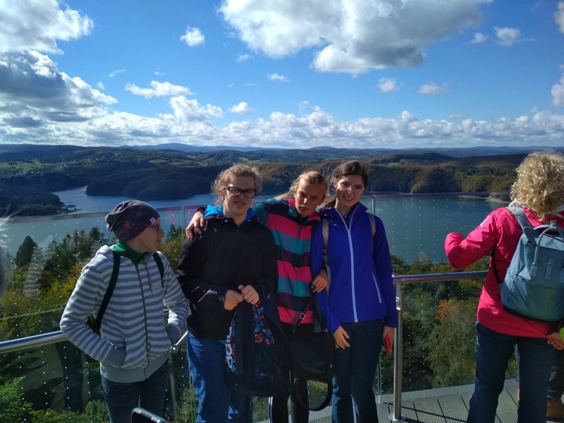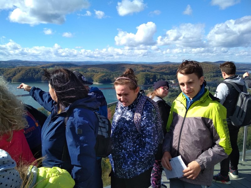 Uczniowie klas 1P, 8a, 7a i 6 b przeżyli niezapomnianą przygodę w Bieszczadach. Przygoda zaczęła się w Solinie od przejazdu kolejką gondolową na górę Jawor. Widok jeziora Solińskiego z lotu ptaka oraz panorama okolicznych wzgórz w jesiennej szacie zapierały dech w piersiach uczestników wycieczki. Niezapomnianych wrażeń dostarczył wszystkim także pobyt w Parku Rozrywki „Tajemnicza Solina”, gdzie w krainie czadów, biesów, rusałek i strażników każdy miał sposobność sprawdzić swoją sprawność fizyczną, spostrzegawczość i inne sprawności. Czas upłynął w cudownej atmosferze, a pogoda była wprost wymarzona.