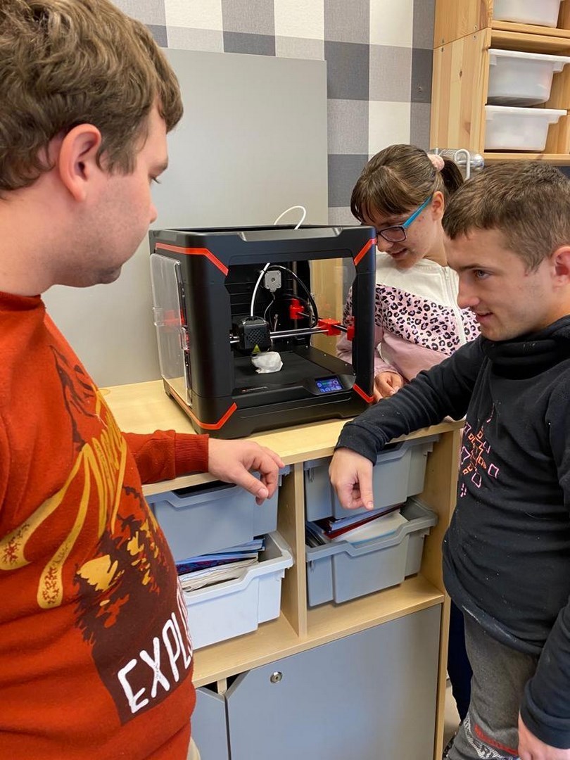 W ramach rządowego programu „Laboratoria Przyszłości” Ośrodek wzbogacił się o nowe sprzęty, m.in. drukarkę 3D. Dużym zainteresowaniem cieszy się to urządzenie szczególnie wśród uczniów Szkoły Przysposabiającej do Pracy. Na zajęciach uczniowie maja okazję obserwować proces tworzenia przedmiotów użytkowych i dekoracyjnych oraz pomocy dydaktycznych. Niestandardowe lekcje na długo pozostaną w pamięci uczniów.