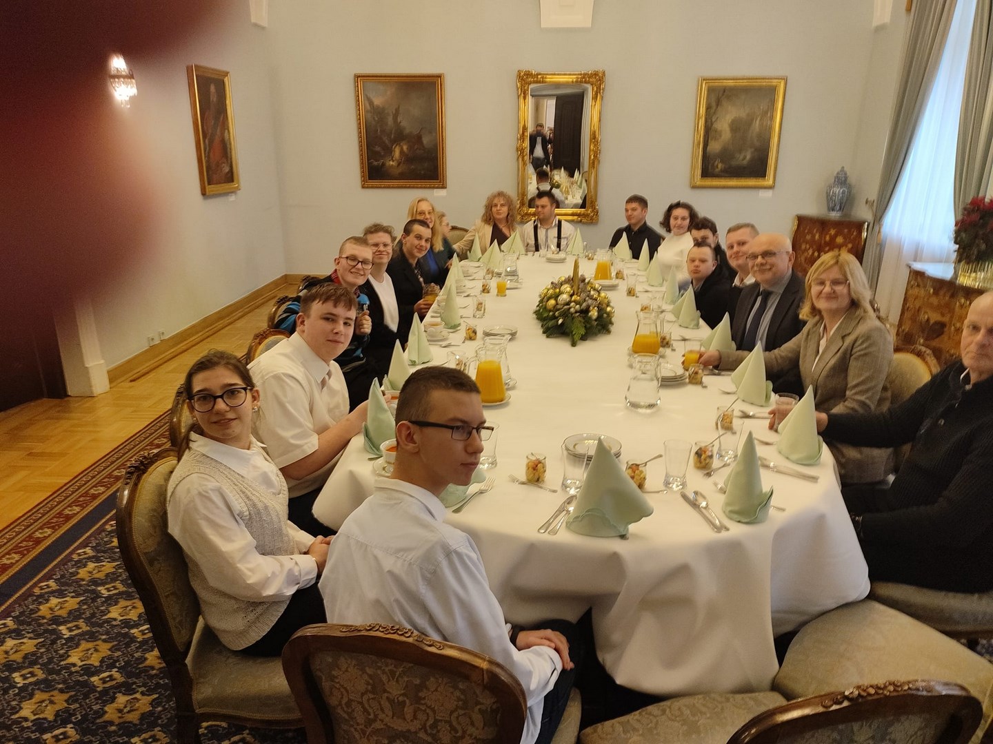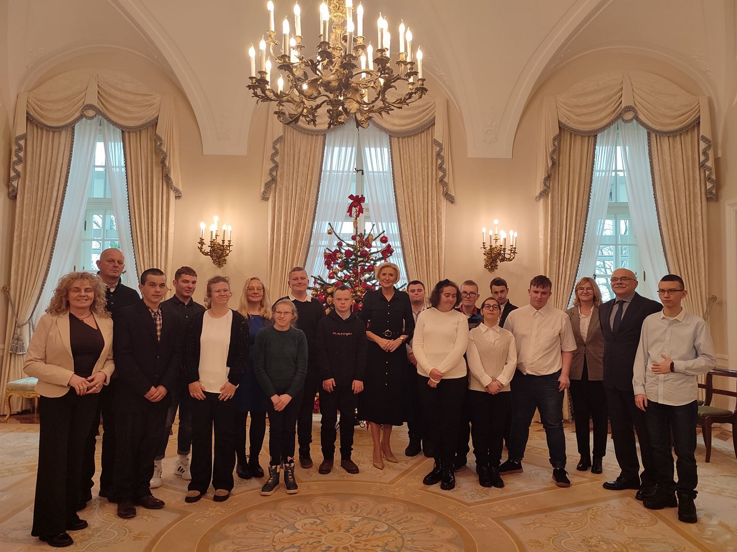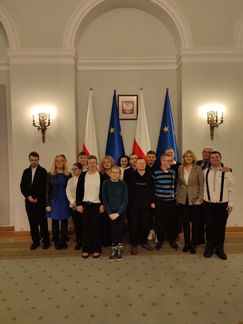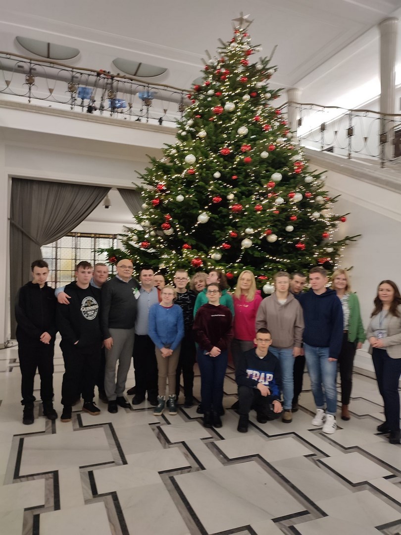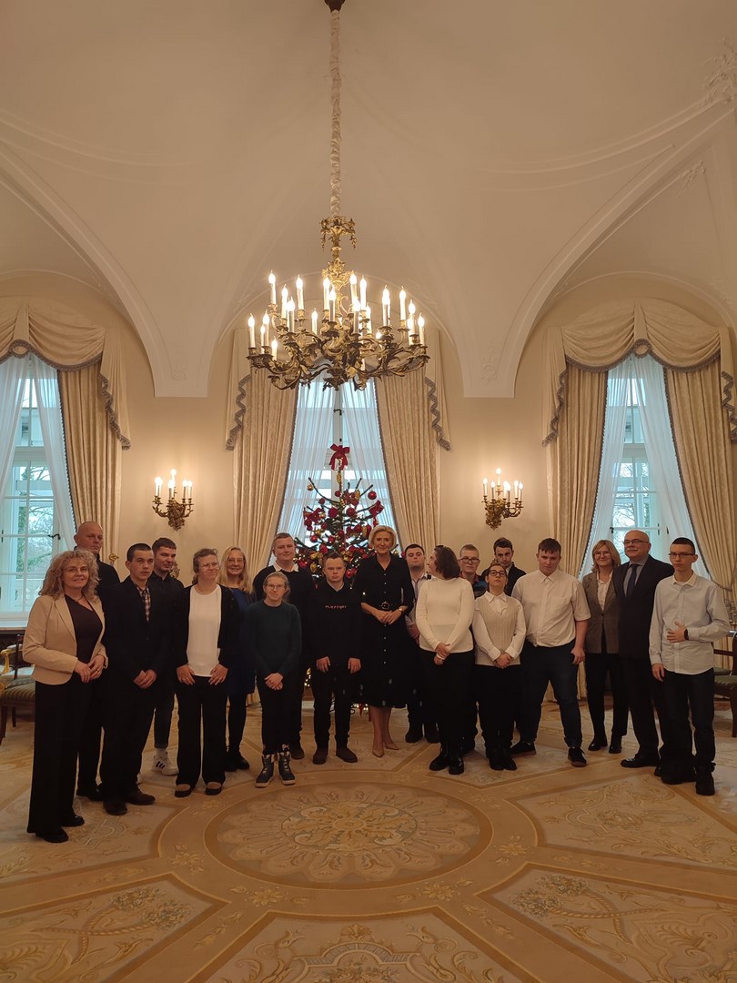 Grupa naszych starszych uczniów spędziła dwa dni w Warszawie. Wyjazd miał niecodzienny charakter, ponieważ reprezentanci społeczności Ośrodka udali się z rewizytą do Pałacu Prezydenckiego. Dwa lata temu Pierwsza Dama RP, Pani Agata Kornhauser-Duda odwiedziła naszą szkołę i zaprosiła nas do swojej warszawskiej rezydencji. Wyjazd został sfinalizowany dzięki pomocy Starosty Tarnowskiego Pana Jacka Hudymy i życzliwości Pana Ministra Piotra Ćwika. Nasi podopieczni zwiedzili Pałac Prezydencki i spotkali się z Panią Agata Kornhauser-Dudą.Spotkanie trwało ponad godzinę i miało bardzo rodzinny charakter. Pierwsza Dama nawiązując do wizyty na Dwudniakach pytała o projekty, wydarzenia, imprezy, które przez ostatnie dwa lata organizował Ośrodek. Nie zabrakło tematów związanych ze świętami, św. Mikołajem, tradycjami świątecznymi. Ogromnym zaskoczeniem dla wszystkich było zaproszenie całej grupy na obiad, który został podany w pomieszczeniu w którym Pan Prezydent podejmuje swoich oficjalnych gości posiłkami. Udało się także wymienić pozdrowienia z Panem Prezydentem Andrzejem Dudą, który spotkał się z wychowankami na korytarzu pałacu udając się do swoich prezydenckich obowiązków. Naszym obieżyświatom udało się również zwiedzić pomieszczenia Sejmu RP za co szczególnie pragną podziękować Pani Poseł Józefie Szczurek-Żelazko ,która zatroszczyła się o ustalenie optymalnego terminu zwiedzania. Udało się także znaleźć czas na podziwianie świątecznych iluminacji warszawskiej starówki. Wczoraj wieczorem, pełni niezapomnianych wrażeń, bezpiecznie wrócili do Ośrodka. Dziękujemy Stowarzyszeniu Prometeusz za finansowe wsparcie wjazdu.