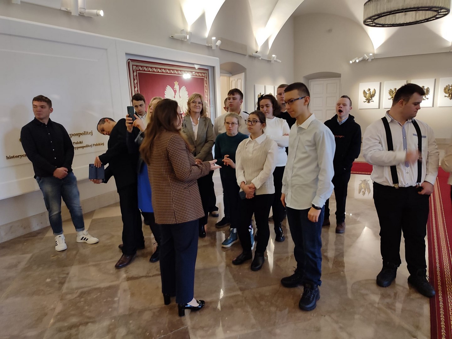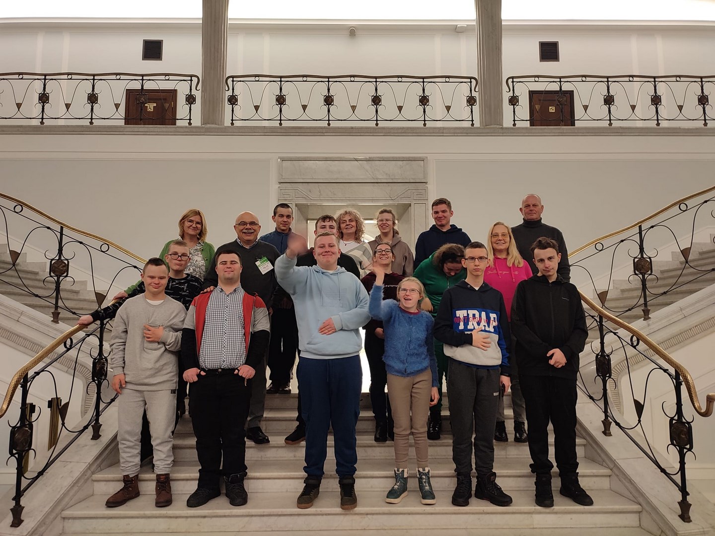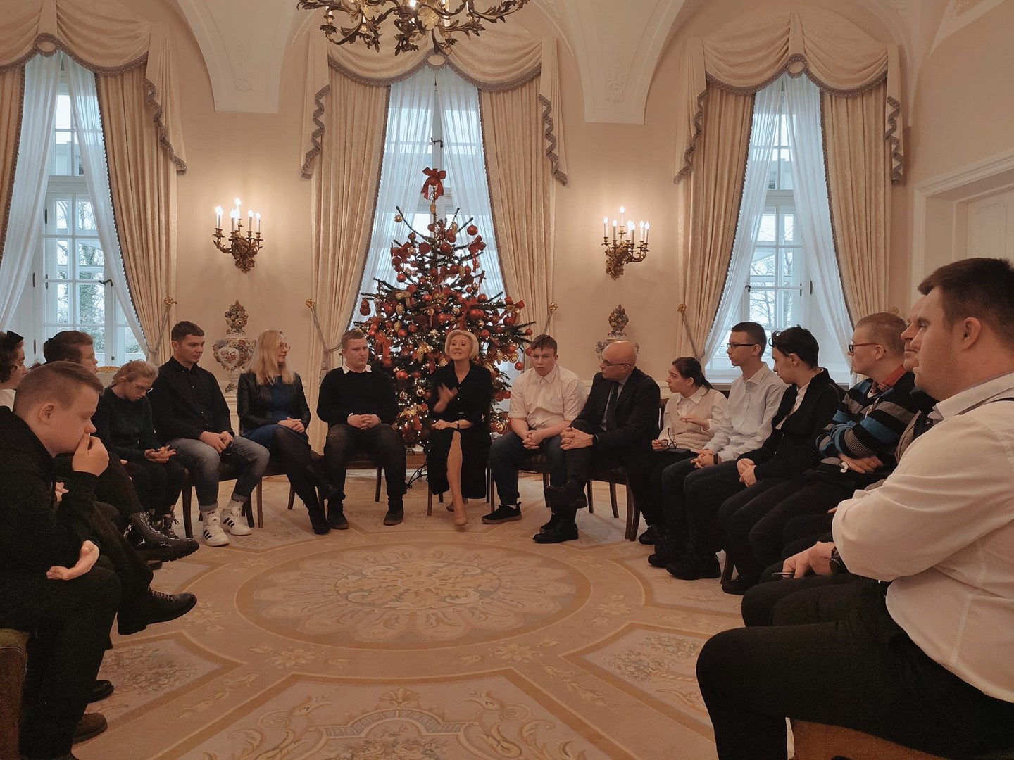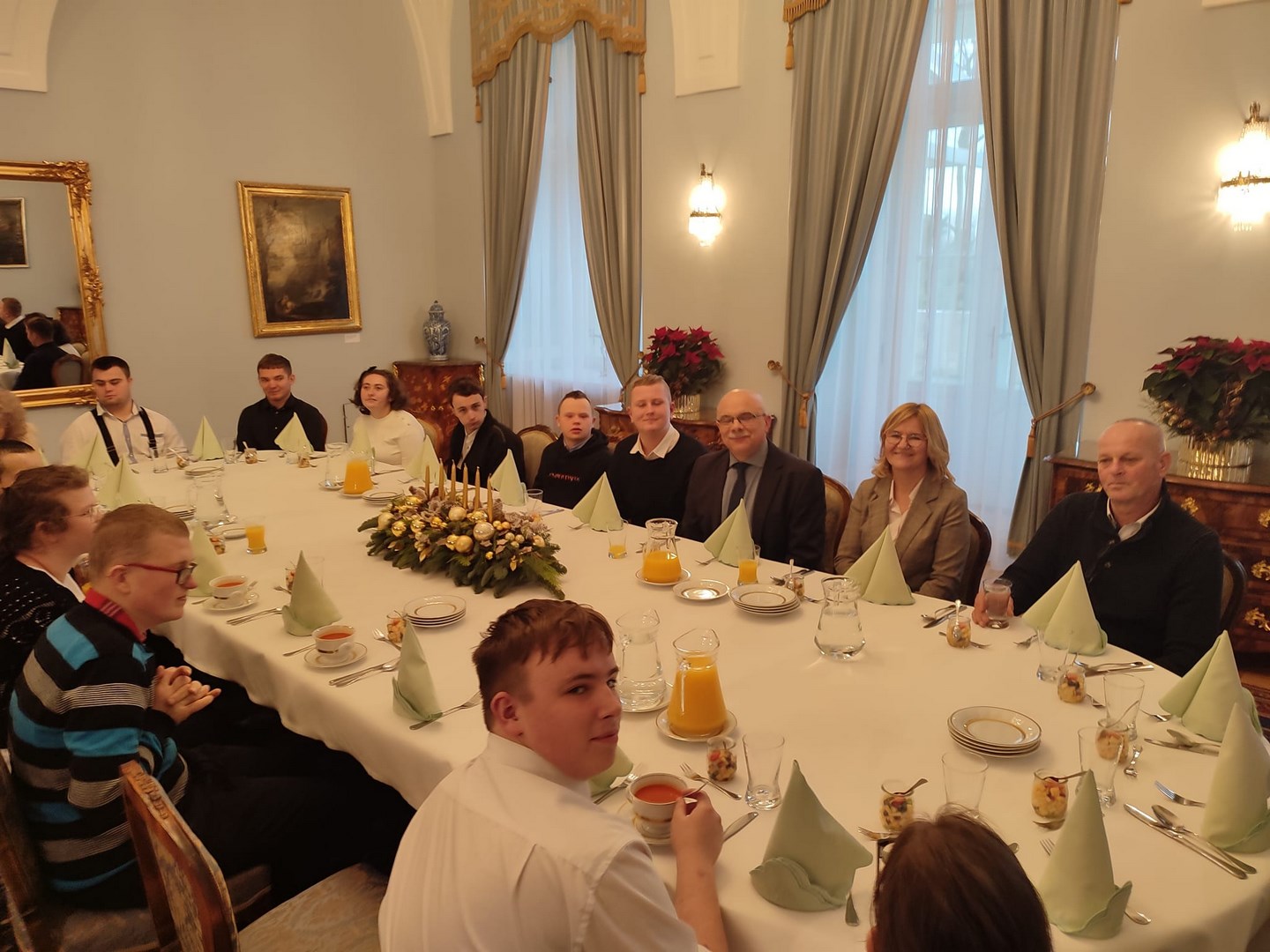 Grupa naszych starszych uczniów spędziła dwa dni w Warszawie. Wyjazd miał niecodzienny charakter, ponieważ reprezentanci społeczności Ośrodka udali się z rewizytą do Pałacu Prezydenckiego. Dwa lata temu Pierwsza Dama RP, Pani Agata Kornhauser-Duda odwiedziła naszą szkołę i zaprosiła nas do swojej warszawskiej rezydencji. Wyjazd został sfinalizowany dzięki pomocy Starosty Tarnowskiego Pana Jacka Hudymy i życzliwości Pana Ministra Piotra Ćwika. Nasi podopieczni zwiedzili Pałac Prezydencki i spotkali się z Panią Agata Kornhauser-Dudą.Spotkanie trwało ponad godzinę i miało bardzo rodzinny charakter. Pierwsza Dama nawiązując do wizyty na Dwudniakach pytała o projekty, wydarzenia, imprezy, które przez ostatnie dwa lata organizował Ośrodek. Nie zabrakło tematów związanych ze świętami, św. Mikołajem, tradycjami świątecznymi. Ogromnym zaskoczeniem dla wszystkich było zaproszenie całej grupy na obiad, który został podany w pomieszczeniu w którym Pan Prezydent podejmuje swoich oficjalnych gości posiłkami. Udało się także wymienić pozdrowienia z Panem Prezydentem Andrzejem Dudą, który spotkał się z wychowankami na korytarzu pałacu udając się do swoich prezydenckich obowiązków. Naszym obieżyświatom udało się również zwiedzić pomieszczenia Sejmu RP za co szczególnie pragną podziękować Pani Poseł Józefie Szczurek-Żelazko ,która zatroszczyła się o ustalenie optymalnego terminu zwiedzania. Udało się także znaleźć czas na podziwianie świątecznych iluminacji warszawskiej starówki. Wczoraj wieczorem, pełni niezapomnianych wrażeń, bezpiecznie wrócili do Ośrodka. Dziękujemy Stowarzyszeniu Prometeusz za finansowe wsparcie wjazdu.