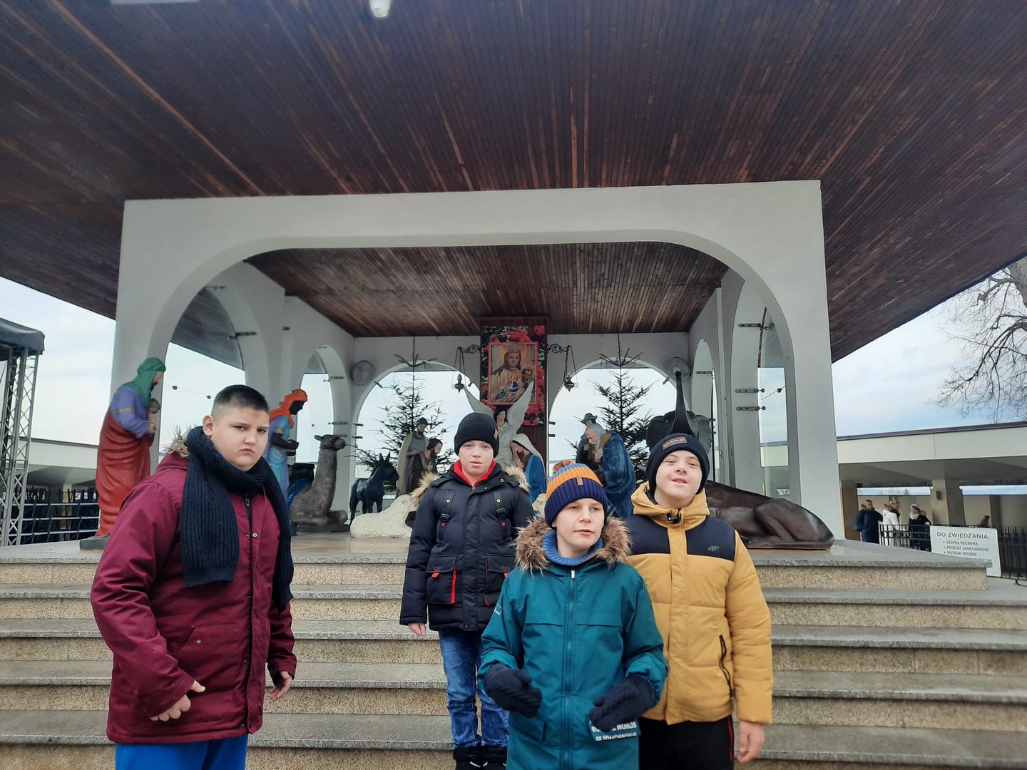 Trwając w radosnym czasie Bożego Narodzenia nasi uczniowie wyruszyli na wycieczki szlakiem szopek bożonarodzeniowych. Odwiedziny Dzieciątka rozpoczęli w mościckim kościele p.w. NMP Królowej Polski gdzie od kilkudziesięciu lat znajduje się ruchoma szopka. Corocznie przybywające elementy wystroju szopki sprawiają, że robi ona duże wrażenie na oglądających. Poruszające się postacie, odgłosy w tle i wielość elementów oddają nastrój „cichej nocy”, gdy rodził się Chrystus. Uczniowie wybrali się także do klasztoru O.O Bernardynów, gdzie od lat można zobaczyć szopkę z żywymi zwierzętami. Tam uczestnicy wyjazdu mogli nie tylko zobaczyć różne zwierzęta gospodarskie i domowe, ale również pogłaskać i nakarmić je. Nasi podopieczni odwiedzili też największą ruchomą szopkę w regionie – przy sanktuarium maryjnym w Tuchowie oraz szopkę w kościele parafialnym w Mikołajowicach. Podopieczni wraz z nauczycielami nie tylko podziwiali niezwykle oryginalne i piękne szopki, ale przede wszystkim uwielbili Bożą Dzieciną serdeczną modlitwą i radosnym śpiewem.