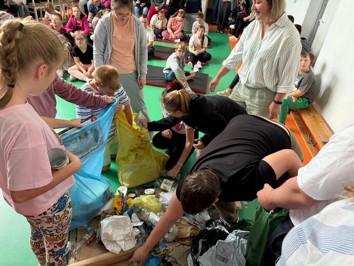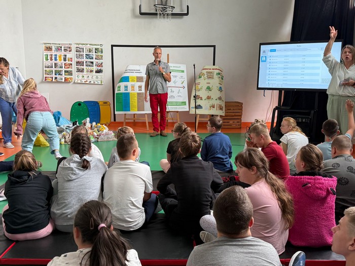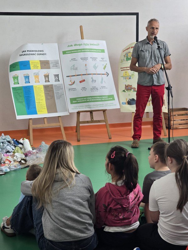 Miło nam było gościć Pana Piotra z Przedsiębiorstwa Usług Komunalnych, który omówił technologie przetwarzania odpadów, czyli odpowiedź na pytanie: Co się dzieje z odpadami, które trafiają do worków.Wprowadzenie w tematykę segregacji odpadów i prawidłowej gospodarki odpadami komunalnymi dla uczestników akcji „Sprzątania świata” odbywającej się w ramach projektu „Bądź EKO 6 – kształtowanie postaw proekologicznych. Projekt realizowany jest w ramach Programu Priorytetowego „Edukacja Ekologiczna” i współfinansowanego przez