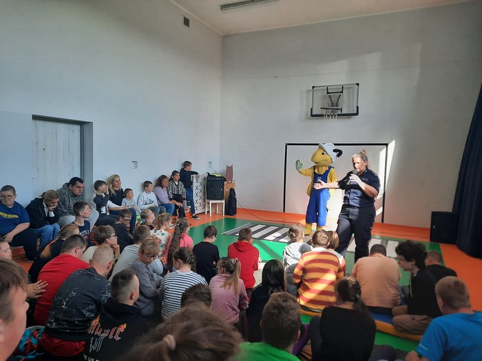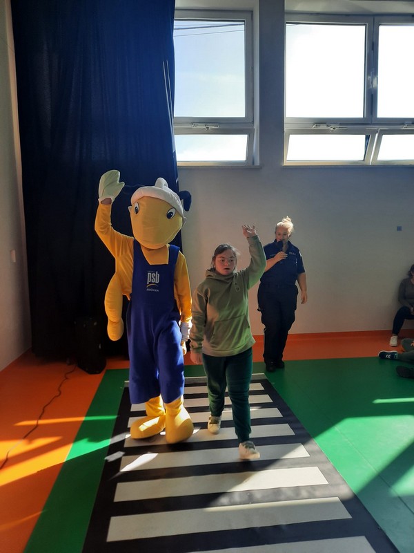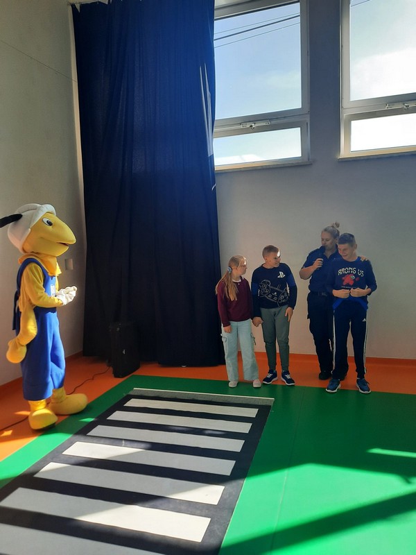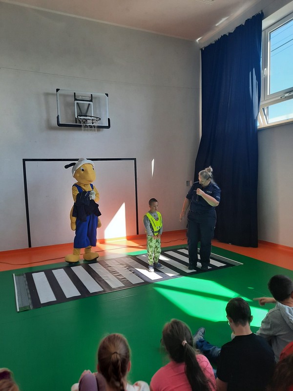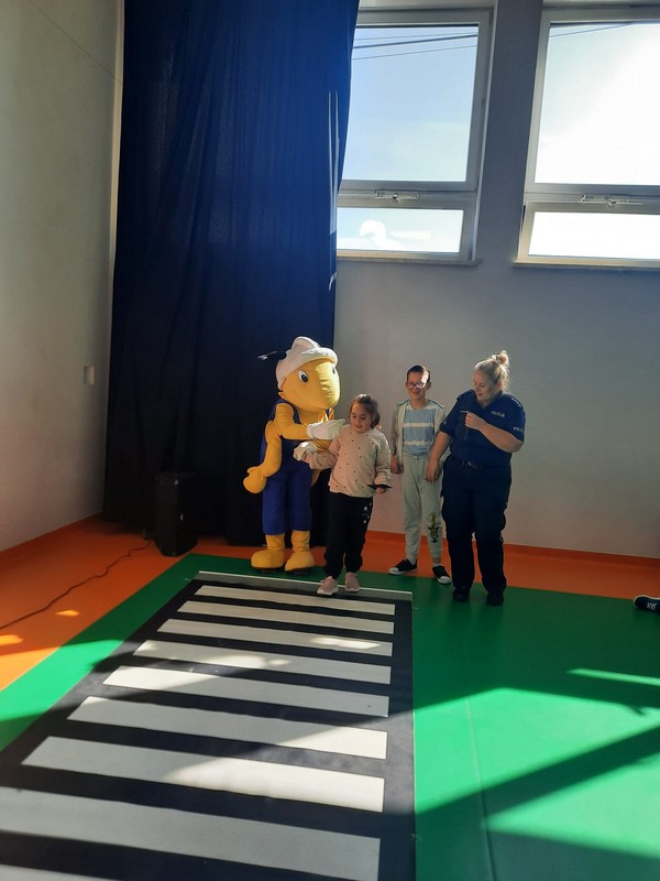 W Ośrodku odbyło się spotkanie z Mrówką w ramach akcji „Bezpieczna droga do szkoły”. Mrówka, wraz z Panią Policjantką uczyła dzieci zasad bezpiecznego poruszania się po drodze, zwracając szczególną uwagę na korzystanie z przejść dla pieszych oraz sygnalizacji świetlnej. Mrówka przypomniała uczniom, jak ważne jest noszenie elementów odblaskowych, aby być widocznym dla kierowców, zwłaszcza podczas jesiennych i zimowych dni. Pani policjantka podkreśliła, że odblaski mogą uratować życie, dlatego każdy pieszy, a szczególnie dzieci, powinny je nosić.