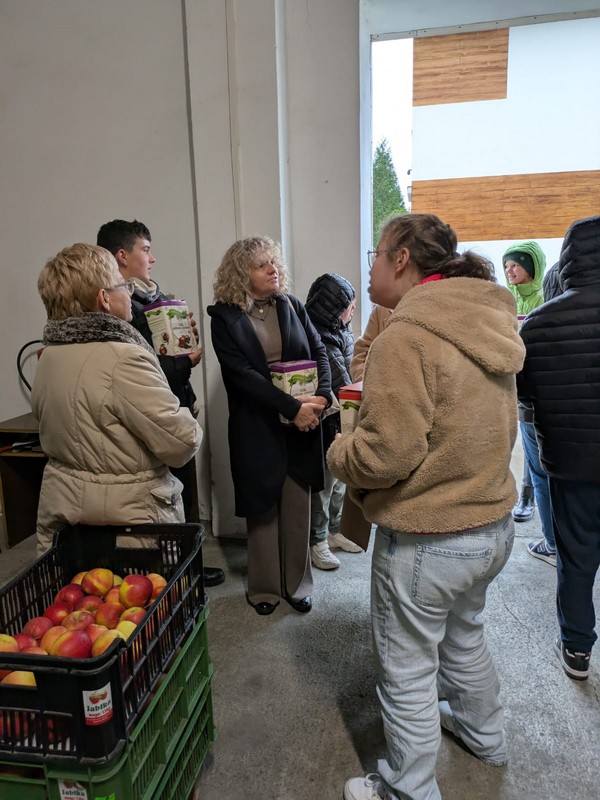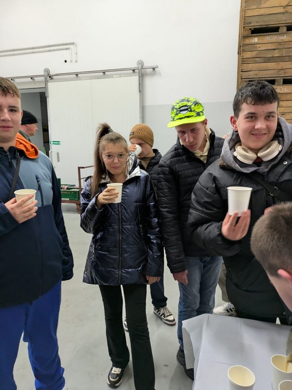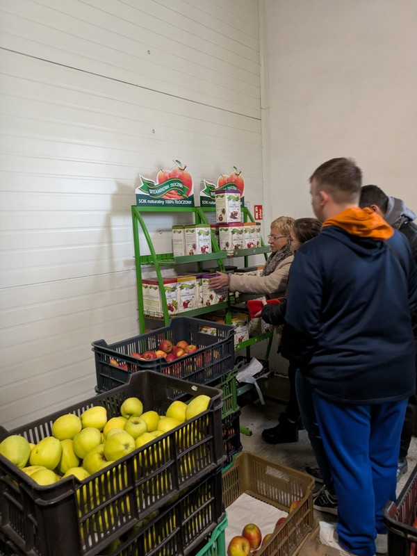 Młodzież z najstarszych klas gościła w Gospodarstwie Sadowniczym Pani Barbary Kubis. Celem wycieczki było zapoznanie się z pracami w ogrodzie i wykorzystywanie owoców do produkcji soków. Jabłka, sad, soki to wielka pasja Pani Barbary, która z wielkim zaangażowaniem opowiadała uczniom na czy polega praca w gospodarstwie sadowniczym. Ogromne chłodnie do przechowywania jabłek, maszyny do tłoczenia soków i sposób pakowania wywarły na wszystkich duże wrażenie. Po degustacji każdy mógł zakupić sok o wybranym smaku z podstawową jabłkową nutą smakową. Może kiedyś nasi absolwenci zechcą pracować w podobnym gospodarstwie? Dziękujemy Pani Basi za bardzo miłą atmosferę i serdeczne przyjęcie.